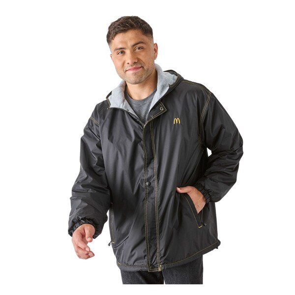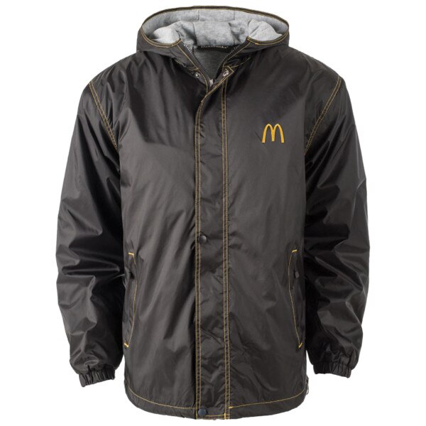 Black and Gold Thermal Storm Jacket SKU: 8GLD Order Grid Summary 0 Subtotal$0.00 Add 0 items to Cart Print Details Wind and water resistant nylon outer shell. Soft and warm cotton/poly inner lining throughout body, hood and sleeves. Storm flap with elastic-bound cu... Details Back DetailsWind and water resistant nylon outer shell. Soft and warm cotton/poly inner lining throughout body, hood and sleeves. Storm flap with elastic-bound cuff. Gold contrast stitching and gold embroidered Arches on left chest.