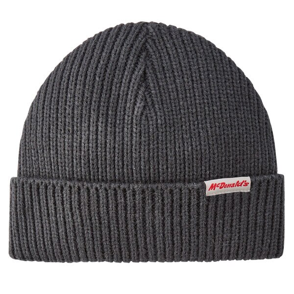 Chunky Rib Knit Beanie SKU: 5CHK $9.99 Quantity discounts available QuantityPrice Quantity -+ Add to Shopping Cart Print Details Heavyweight, rib knit cap has a traditional look with custom McDonald's woven label. Graphite grey. Details Back DetailsHeavyweight, rib knit cap has a traditional look with custom McDonald's woven label. Graphite grey.