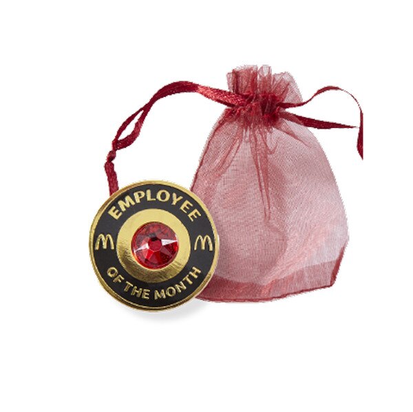 Employee of the Month Red Gem Pin SKU: 9EOMG $3.99 Quantity discounts available QuantityPrice Quantity -+ Add to Shopping Cart Print Details 1" shiny brass with black accents and red gem. Comes in red organza gift bag. Details Back Details1" shiny brass with black accents and red gem. Comes in red organza gift bag.