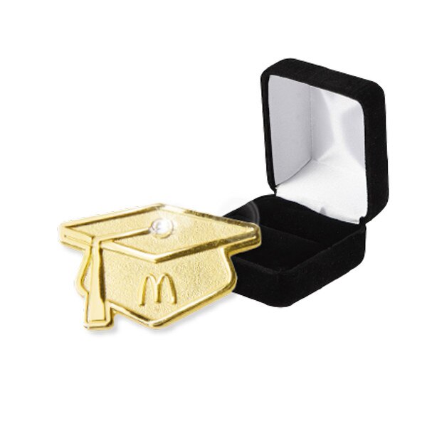 Golden Grad Pin with Crystal SKU: 9GPC $5.99 Quantity discounts available QuantityPrice Quantity -+ Add to Shopping Cart Print Details High quality, raised & brushed gold metal pin with Swarovski crystal. Individually packaged in black velvet gift box. 1" Details Back DetailsHigh quality, raised & brushed gold metal pin with Swarovski crystal. Individually packaged in black velvet gift box. 1"