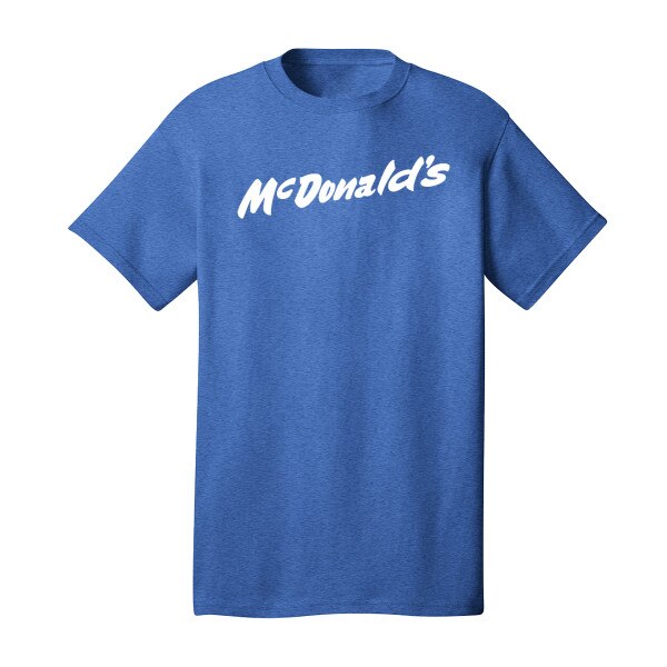 McDonald's Blue Retro Script T-Shirt SKU: 1BRT Order Grid Summary 0 Subtotal$0.00 Add 0 items to Cart Print Details 100% cotton, Unisex sizes. Please add $3.00 for sizes 2X-4X. Details Back Details100% cotton, Unisex sizes. Please add $3.00 for sizes 2X-4X.