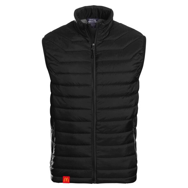 Mens Black Quilted Zip Vest SKU: 8QVM Order Grid Summary 0 Subtotal$0.00 Add 0 items to Cart Print Details Plush yet feather light. Insulated with Polyloft® recycled polyester for warmth without the bulk. Roomy fit with zippered side pockets, adjustable... Details Back DetailsPlush yet feather light. Insulated with Polyloft® recycled polyester for warmth without the bulk. Roomy fit with zippered side pockets, adjustable waist pullcord and cordlock hem. Custom McDonald's red woven label stitched to hem. Mens' sizes S - 3X