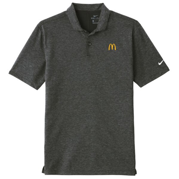 Ultrasoft brushed fabric with Dri-FIT technology for performance and comfort. Design details include a self-fabric collar, two-button placket with dyed-to-match buttons, open hem sleeves and side vents. Embroidered Arches. Nike logo on sleeve. 4.6 oz., 96/4 recycled polyester/cotton. Unisex sizes S - 2X. Please add $3.00 for size 2X.