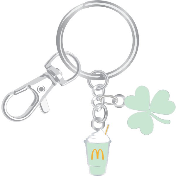Shamrock Shake Key Ring with two .75" die-struck enamel charms. This is an exclusive and limited offer. All orders will ship out mid- to late- March. ALL SALES ARE FINAL. Limited quantities available. Prices do not include shipping, handling or applicable sales tax. All products are subject to availability.