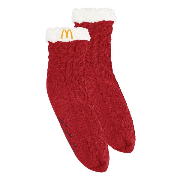 Sherpa Socks SKU: 9SHP $9.99 Quantity discounts available QuantityPrice Quantity -+ Add to Shopping Cart Print Details Cozy, cable knit socks with sherpa lining and non-skid grips on foot. Embroidered arches on one sock. Details Back DetailsCozy, cable knit socks with sherpa lining and non-skid grips on foot. Embroidered arches on one sock.