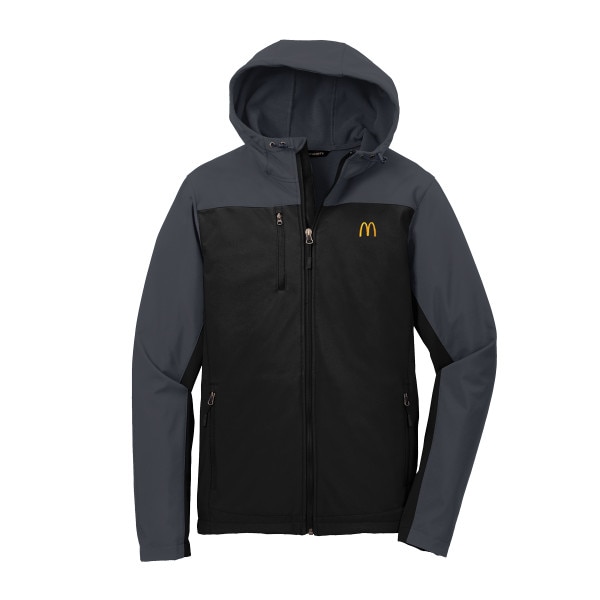 100% polyester woven shell bonded to a water-resistant film insert and a 100% polyester microfleece lining. Adjustable hood with locking drawcord to customize fit. Full-length interior storm flap with chin guard, zippered pockets and open hem with locking drawcord. Unisex sizes XS-3X.