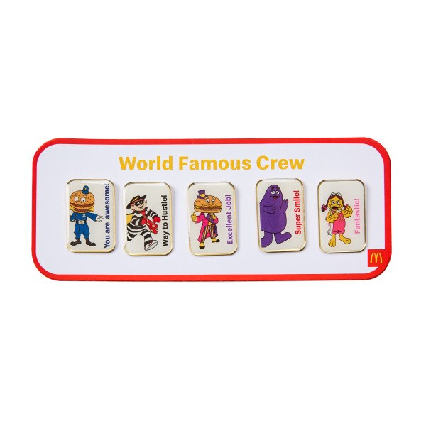 5 real brass pins on card, each with a different character and crew compliment. Perfect to hand out to YOUR world famous crew! Due to recent tariff increases, the cost of this product has risen. We have worked to absorb as much of the added expense as possible, but a small price adjustment has now taken effect for this item.
